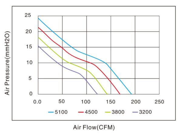 Listed ModelBearing SystemRated VoltageOperation VoltageRated CurrentInput PowerRated SpeedMax Air FlowMax Static PressureNoise LevelWeight