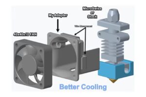 A função principal da ventoinha de arrefecimento da peça é gerir a temperatura do filamento após a extrusão.